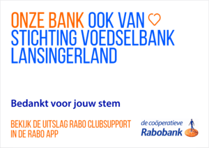 Met Rabo ClubSupport bepalen de Rabo-leden welke clubs en verenigingen een financieel steuntje in de rug krijgen. Elk Rabo-lid kon dit jaar weer stemmen op hun 3 favoriete verenigingen of stichtingen. Ook Stichting Voedselbank Lansingerland was dit jaar weer van de partij. Zoals u ziet was er voor ons een mooie resultaat.