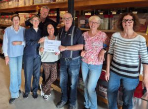 Op de foto de feestelijke overhandiging van de cheque op donderdag 9 oktober in onze opslagloods in Bergschenhoek.